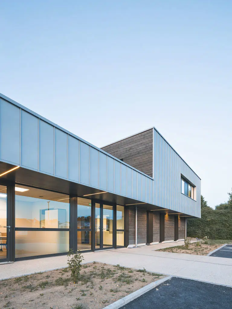 Programme : Extension des bureaux et des vestiaires. Avec nouveau bardage sur façade Sud. Aménagement d’une nouvelle aire de lavage extérieure et transformation d’espaces de stockage en garages.