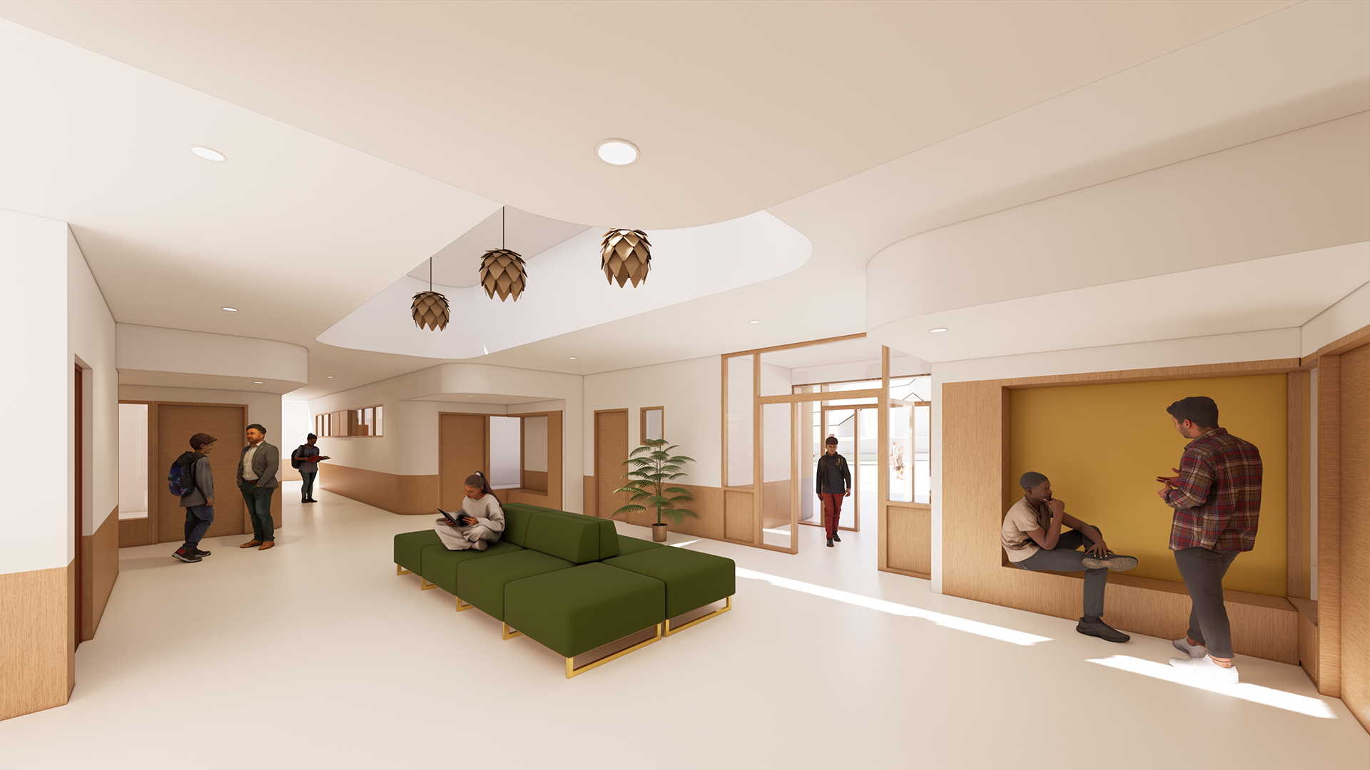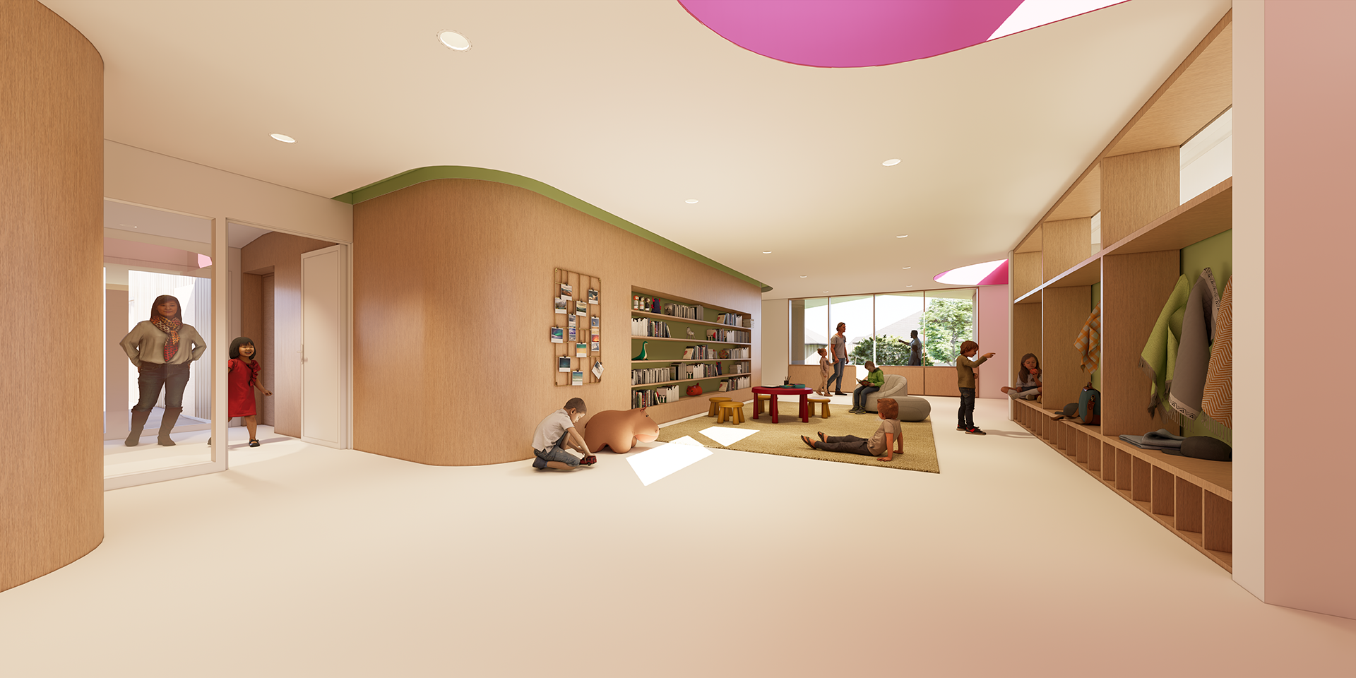 Le bâtiment privilégie une échelle domestique et rassurante, utilisant des matériaux biosourcés tels que la brique de terre crue, le bois et l’enduit à la chaux. À l’intérieur, la conception bioclimatique et le travail sur l’acoustique créent un cadre de vie apaisant, ponctué de microarchitectures propices au repli et à l’autonomie. En intégrant les principes des cours OASIS, ce projet transforme le site en un véritable paysage thérapeutique où le bâti et la nature s’unissent pour l’épanouissement des jeunes et de leurs accompagnants.